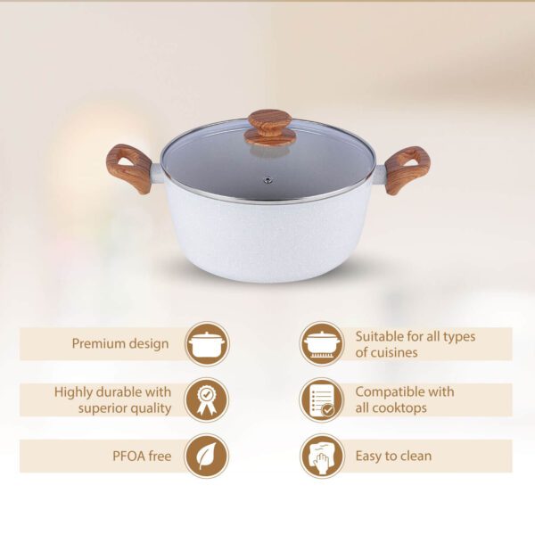 Salford White Spatter Non-Stick Casserole 240 MM with Glass Lid, Wooden Handle , Induction Compatible