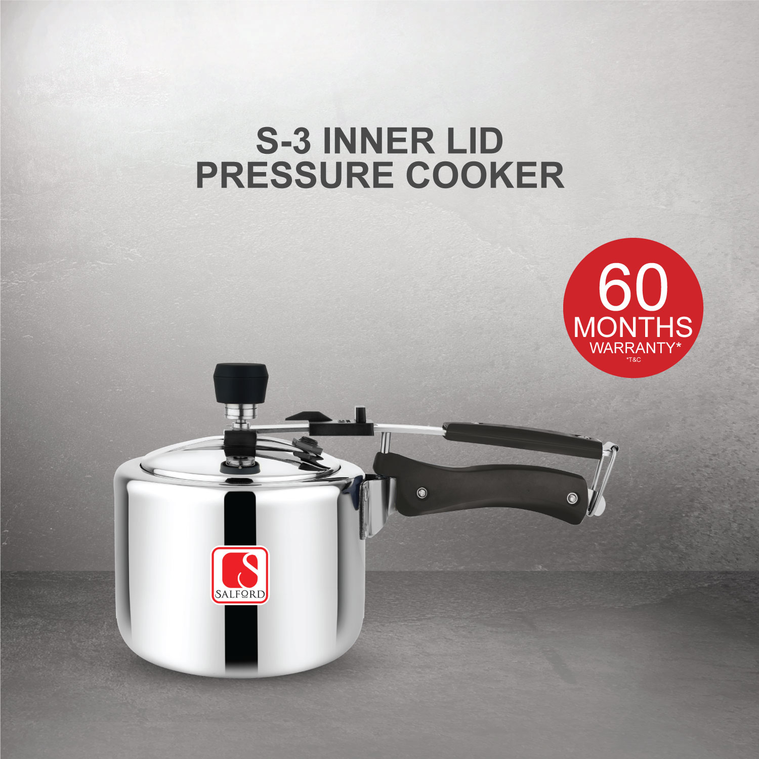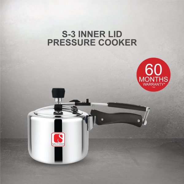 Salford S-3 Triply 2 Litre Inner Lid Pressure Cooker , Quick Pressure Release (QPR) , Induction Base & Gas Stove Compatible , 5 Years Warranty
