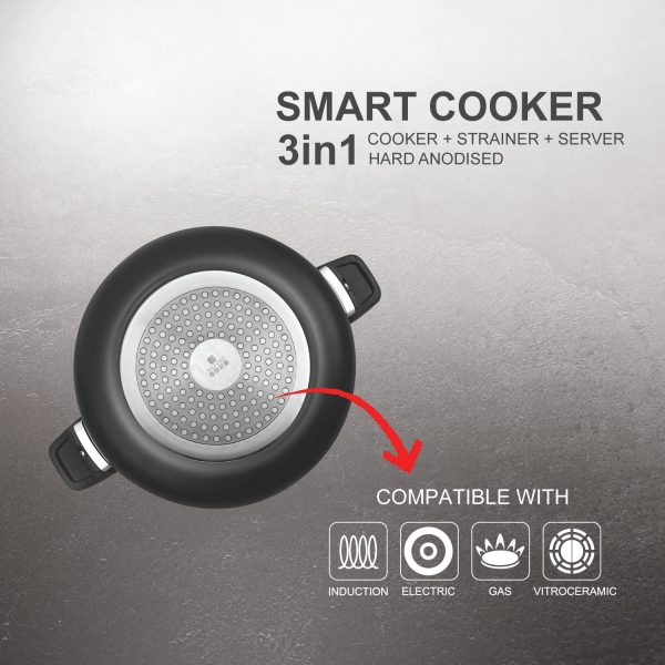 Salford Xpert 3L Hard Anodised 3-in-1 Outer Lid Pressure Cooker , Induction Compatible , Black