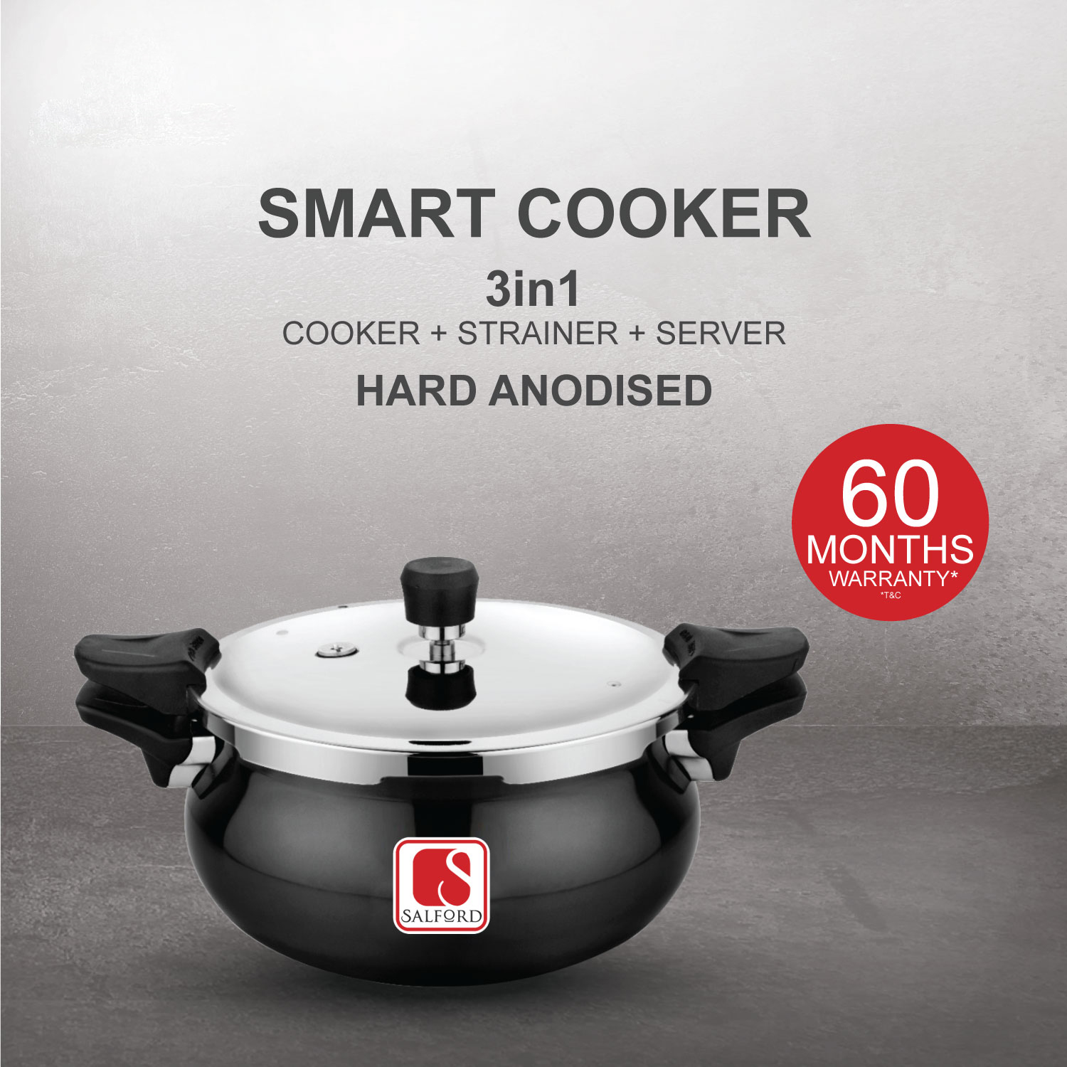 Salford Xpert 5L Hard Anodised 3-in-1 Outer Lid Pressure Cooker , Induction Compatible , Black