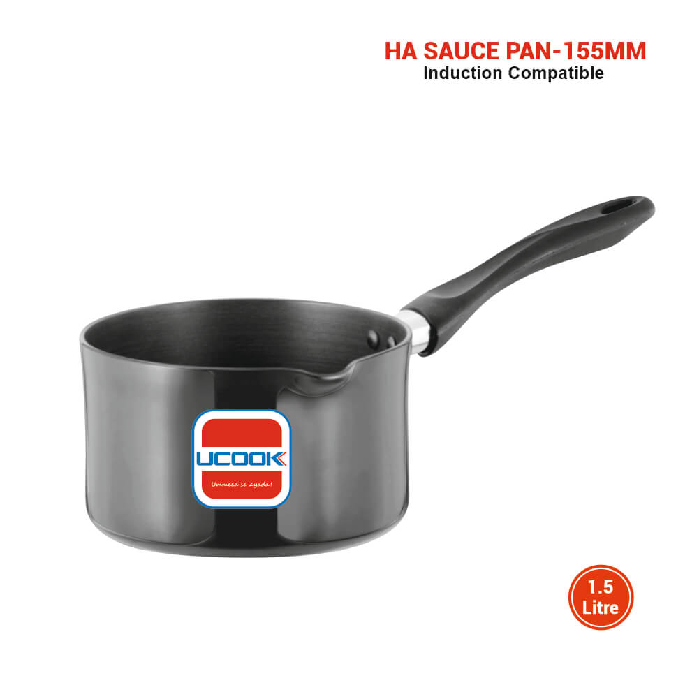 UCOOK By United Ekta Engg. Hard Anodised Sauce Pan 155mm/1.50 Litre, Induction compatible, Black