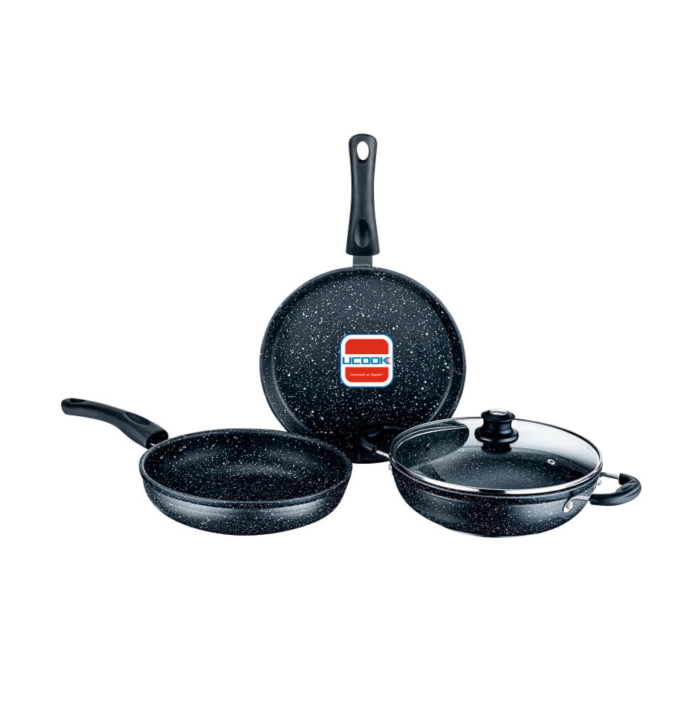 UCOOK Nonstick Aluminium Induction Rock Series Cookware Set - Black (Kadai, Fry Pan, Dosa Tava)