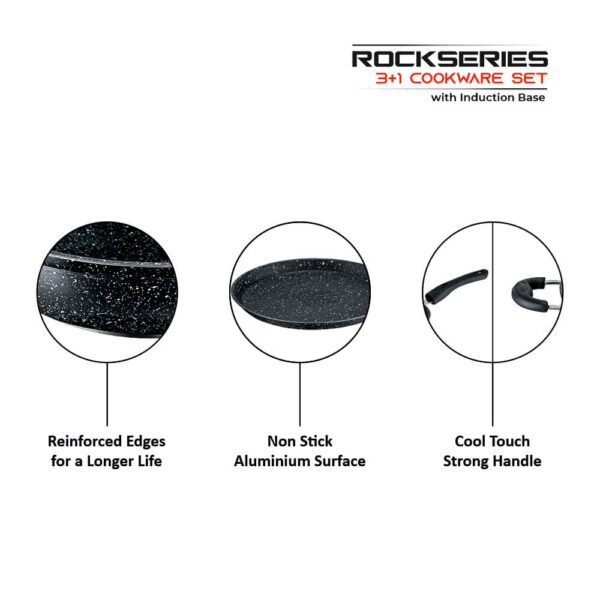 This cookware set has made my kitchen complete. I love the rock finish look and the strong quality. Cooking requires less oil, and food never sticks. Even my dosa comes out perfect. Very easy to wash, and it feels like it will last for years.