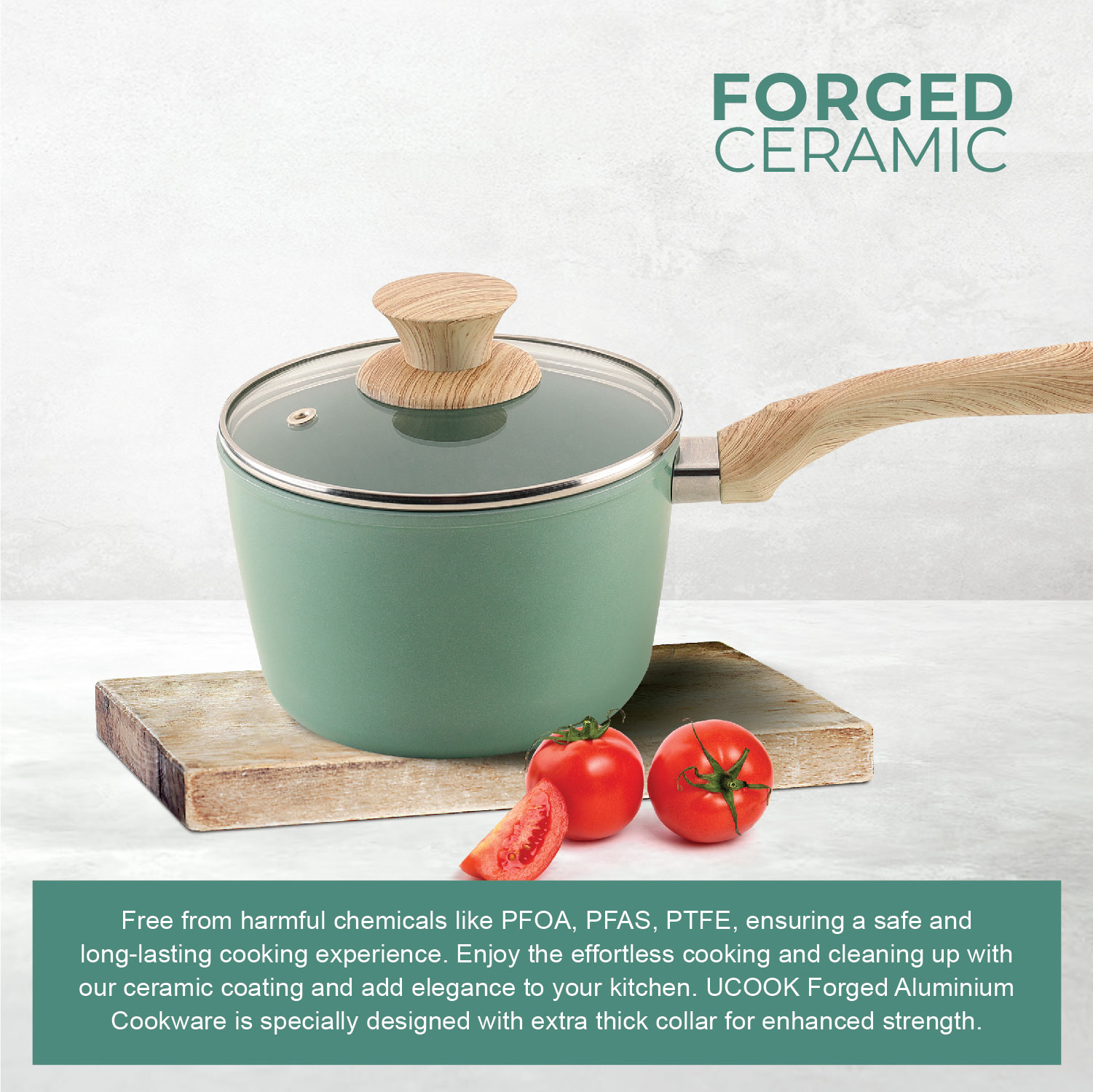 UCOOK Forged Ceramic Mint Green 1.75L Saucepan with Glass Lid, 160mm